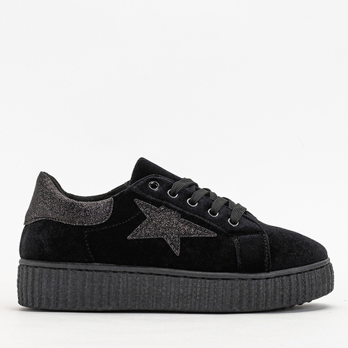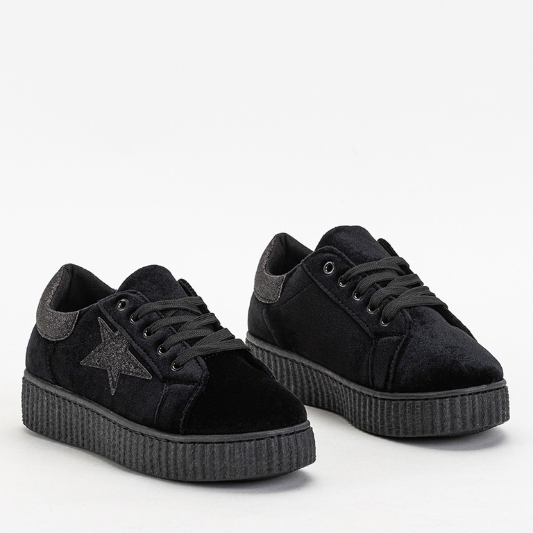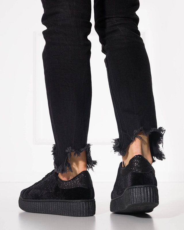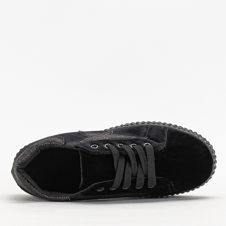 - Sieviešu kedu stila trenažieri no a'la velūra materiāla. Virspusē ir mirdzoši ieliktņi, bet apavu vidusdaļa ir izklāta ar audumu. PIEZĪME: modeļa zolei var būt nelielas krāsas izmaiņas.