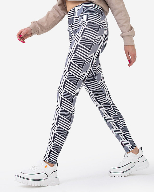 Rakstaini sieviešu legingi ar augstu vidukli melnbalti - Apģērbs