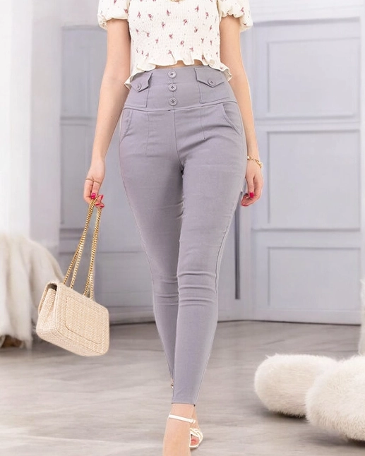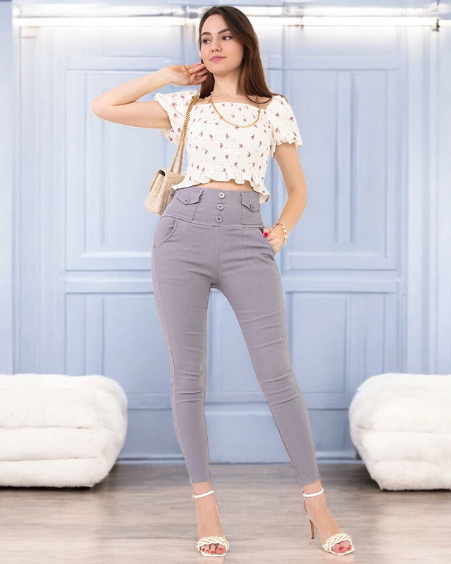 Pelēki sieviešu treggingi ar pogām - Apģērbs