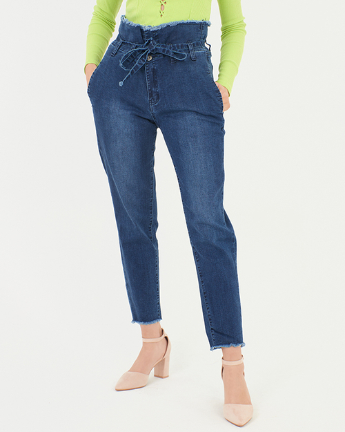 - Stilīgi sieviešu mom džinsi, izgatavoti no kokvilnas materiāla. Modelim ir: - augsta jostasvieta, - pogas un rāvējslēdzēja aizdare, - 4 kabatas, - josta 100 cm garums un platums: 2 cm precizitāte (+/-) 1 cm.