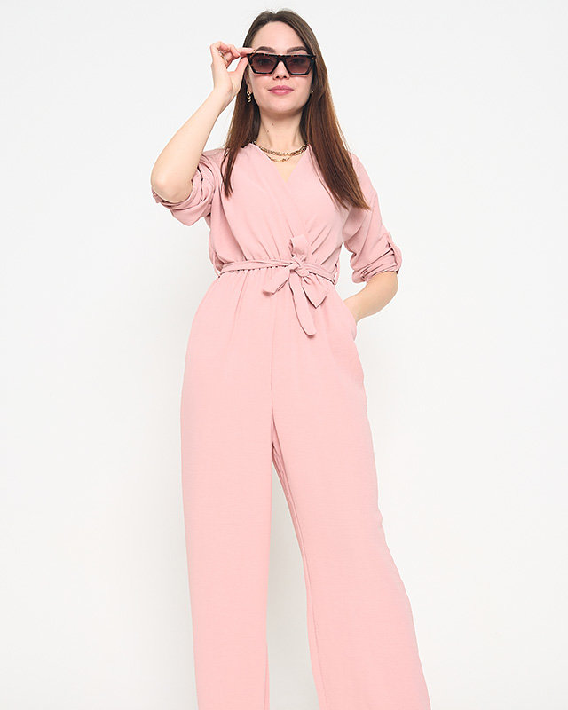 - Modīgs sieviešu kombinezons ar garām, izšūtām piedurknēm. Kājas ir taisnas un platas, kakla izgriezums ir serpentīns ar aplokšņu priekšdaļu. Viduklis ar elastīgu lenti un dekoratīvu ielaidumu. PIEZĪME: mērījumu precizitāte (+/-) 1 cm.