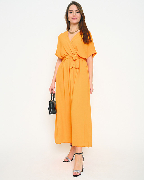 Oranža dāmu taisna kleita ar aploksnes kakla izgriezumu - Apģērbs
