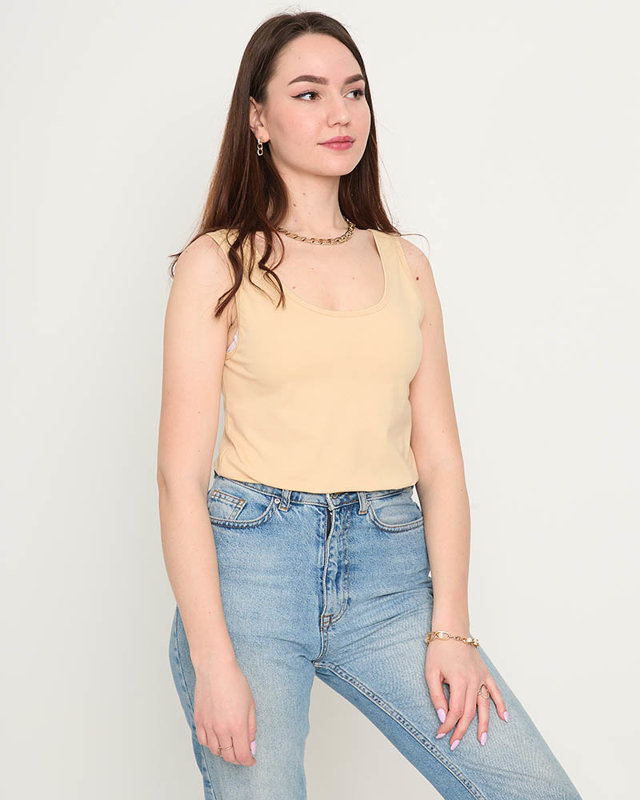 Bēšs sieviešu T-krekls ar plecu lencēm PLUS IZMĒRS - Apģērbs