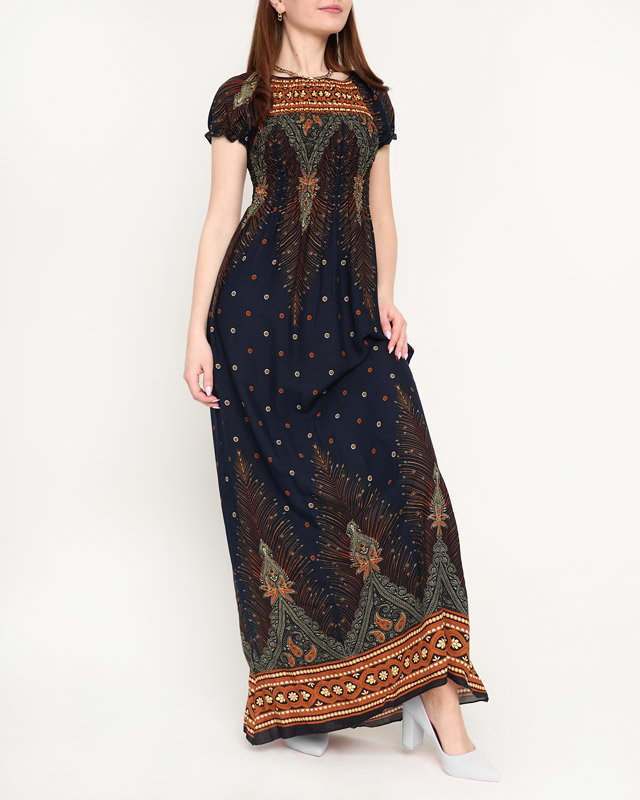 Rakstaina tumši zila sieviešu maxi kleita - Apģērbs