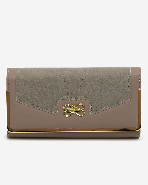 - Sieviešu ādas maks ar dekoratīvu tauriņu priekšpusē. Prece ir piestiprināta ar pogu. Modelim ir: - 3 nodalījumi, no kuriem 1 aiztaisāms ar rāvējslēdzēju, - 8 kabatas maksājumu kartēm vai citiem dokumentiem.