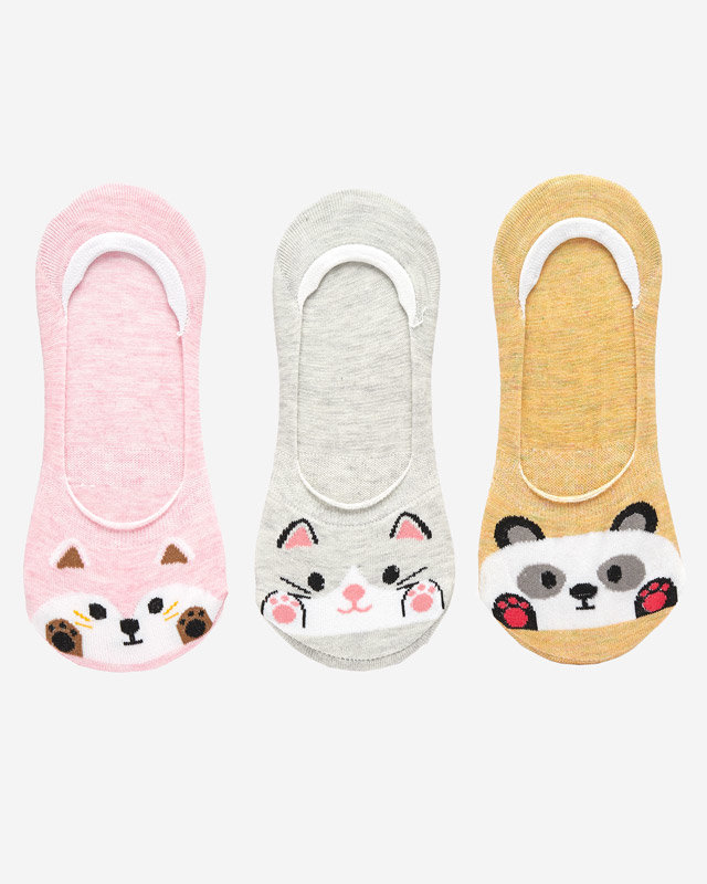 • Sieviešu krāsainas zeķes 3 zeķes / iepakojums no kokvilnas materiāla. Modelim ir dzīvnieka formas apdruka un silikona papēži. Viņi labi darbosies katru dienu!