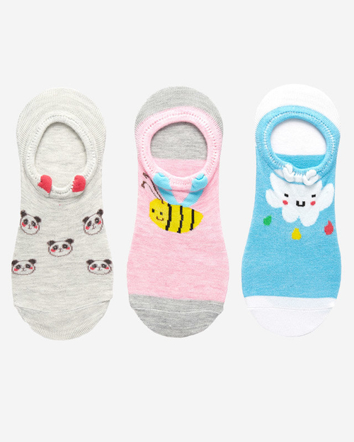 - Sieviešu krāsainas 3-paku zeķes no kokvilnas materiāla. Modelim ir dzīvnieka formas apdruka un silikona papēži. Viņi labi darbosies katru dienu!