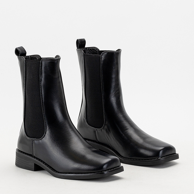 OUTLET Sieviešu melni zābaki ar kvadrātveida purngalu Pyroqe - Apavi