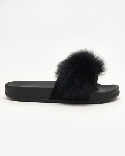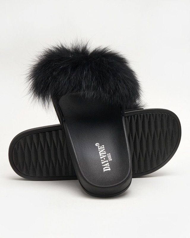 OUTLET Melnas čības ar kažokādu Nate - Apavi