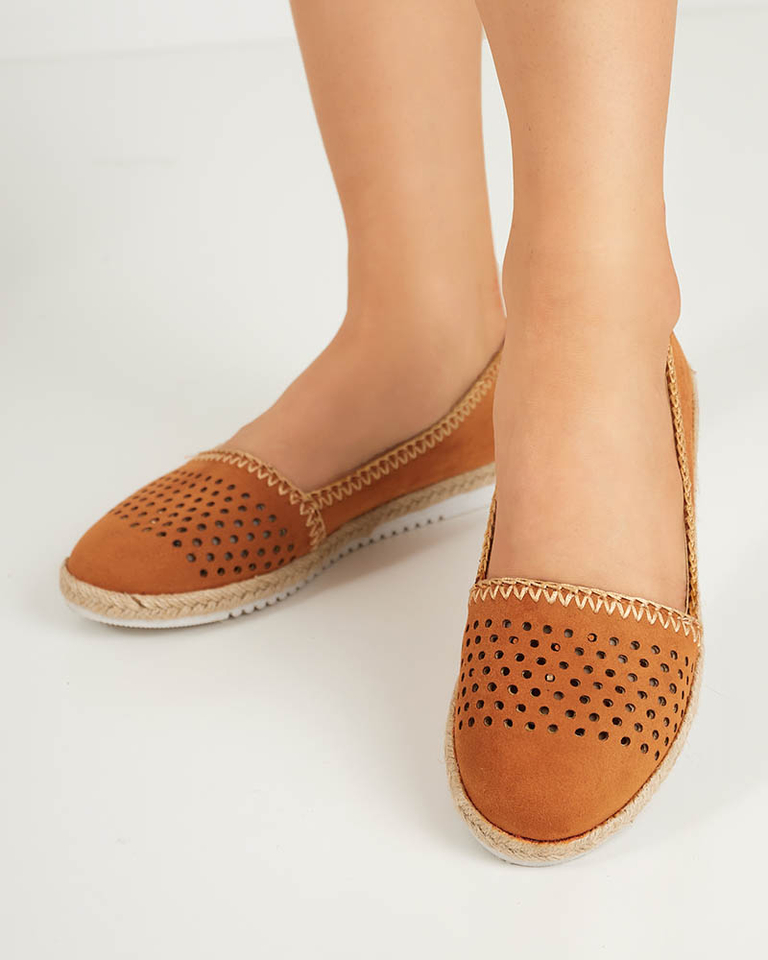 OUTLET Sieviešu slips uz ažūra espadrilas kamieļa Terila - Apavi