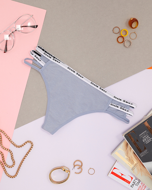 Sieviešu zilas kokvilnas siksnu biksītes ar svītrām - Apakšveļa