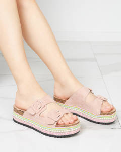 • Elegantas sieviešu čības no ekoloģiskas zamšādas, dekorētas ar pērlēm. Zole ir pa pusei no gumijas materiāla un arī rotāta ar rakstainu svītru. Lielisks papildinājums gandrīz jebkuram vasaras stilam!