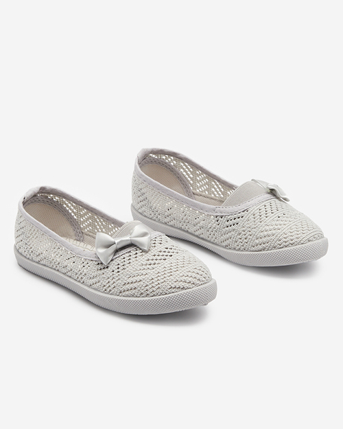 Pelēkas ažūras kedas meitenēm ar bantīti Aplo - Apavi