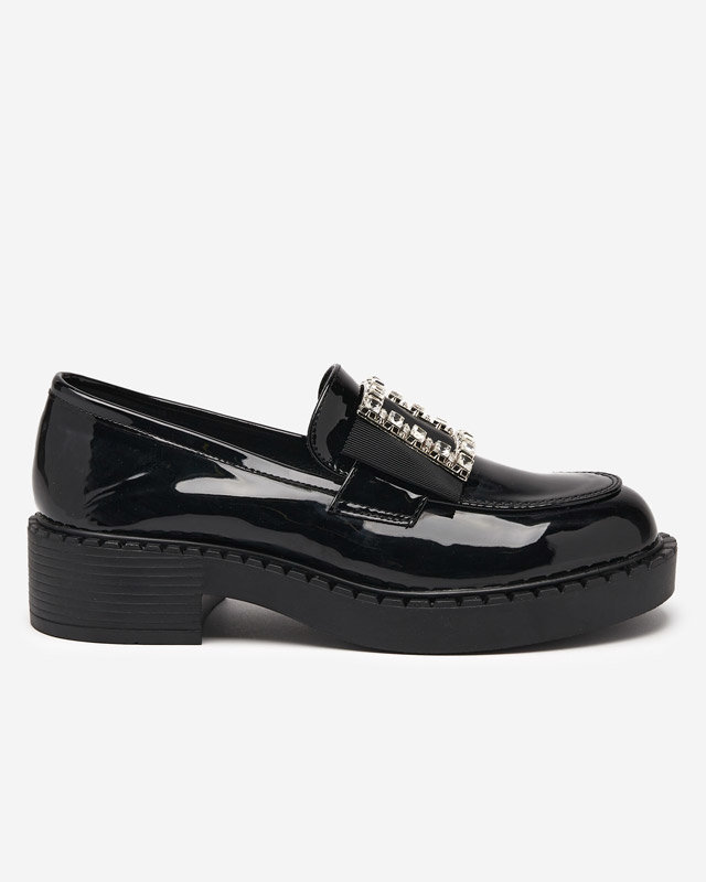 • Šīs sezonas modernākās sieviešu kurpes ar biezām zolēm. Virspuse un iekšzole izgatavota no lakotas ekoloģiskās ādas. Purngals ir dekorēts ar sudraba sprādzi. Piezīme: uz izstrādājuma materiāla ir līmes pēdas.