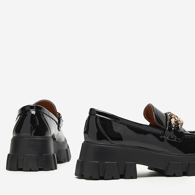 OUTLET Sieviešu melni lakoti apavi ar ķēdīti Guinewra - Apavi