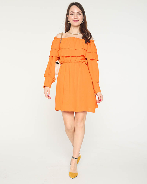 Sieviešu oranža īsa kleita ar volāniem - apģērbs