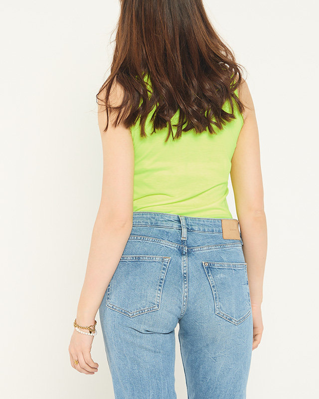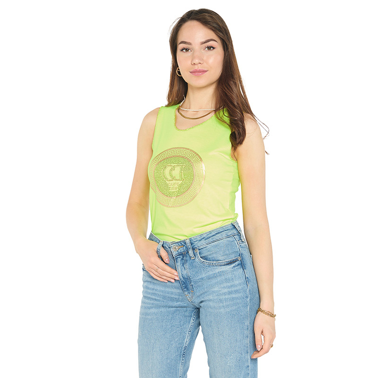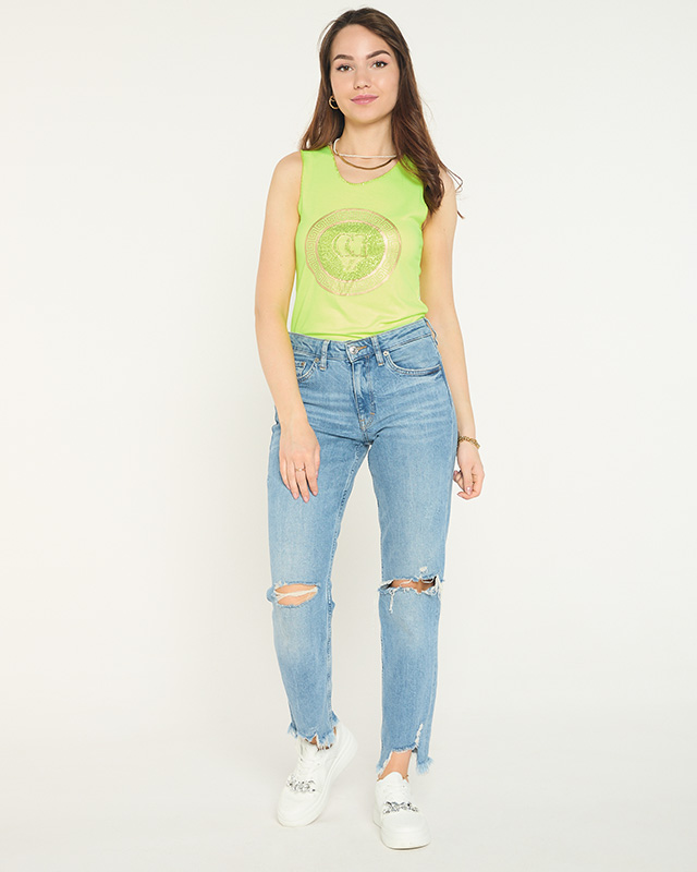 Dzeltena neona blūze uz lencēm ar apdruku un kubisko cirkoniju - Apģērbs