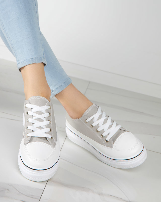 OUTLET Gaiši pelēkas sieviešu kedas uz Veritar platformas - Apavi