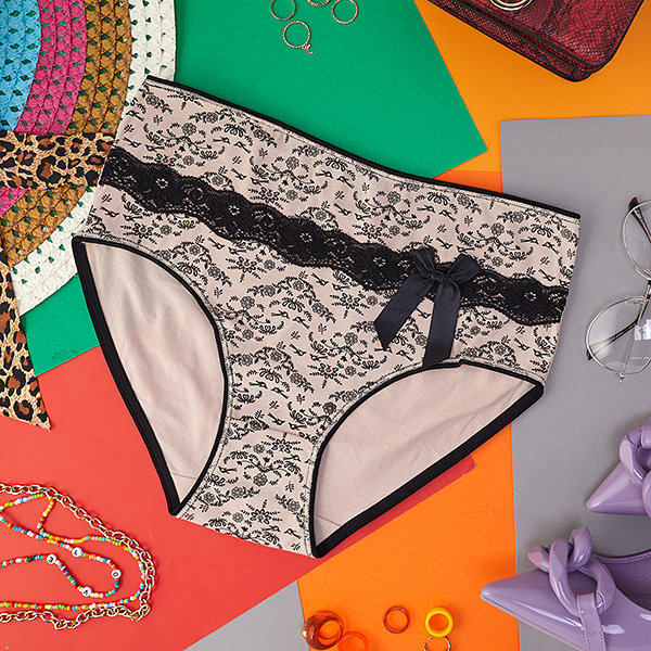 Sieviešu biksītes ar apdruku, bēšā krāsā PLUS IZMĒRS- Apakšveļa