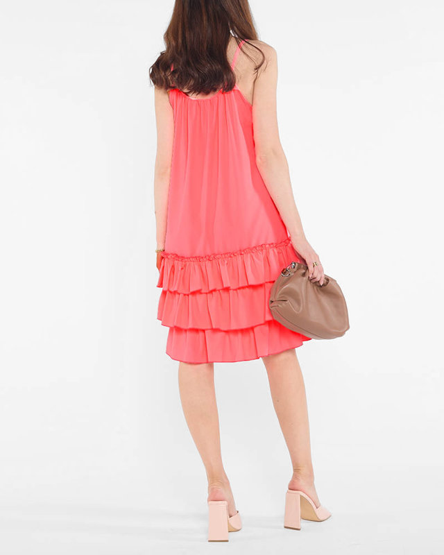 Rozā neona sieviešu kleita uz lencītēm ar volāniem - Apģērbs