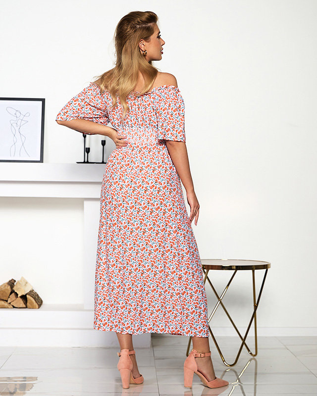 Oranža un balta maxi kleita ar ziedu rakstu - Apģērbs
