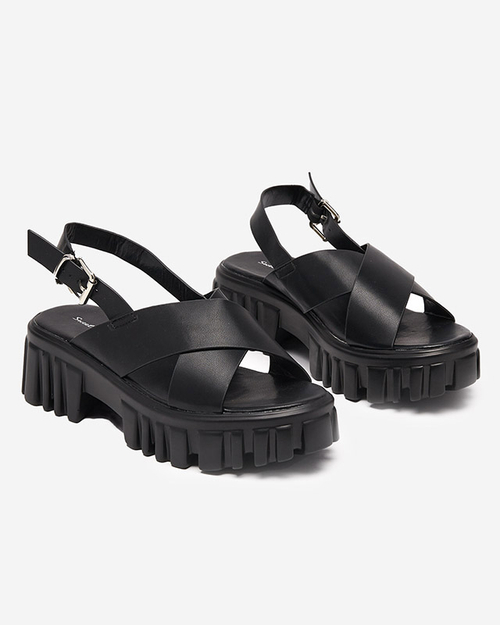 Melnas sieviešu sandales uz masīvas Otida zoles - Apavi