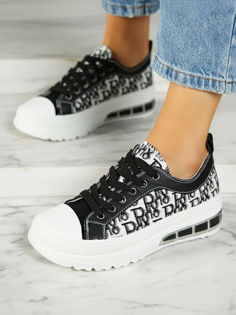 Sneakers Livia w Kolorze Czarno-Białym z Platformą