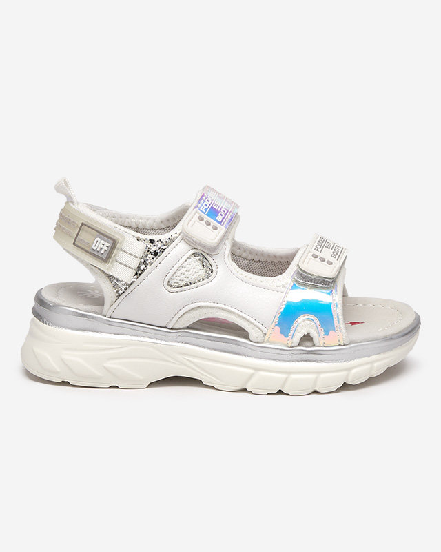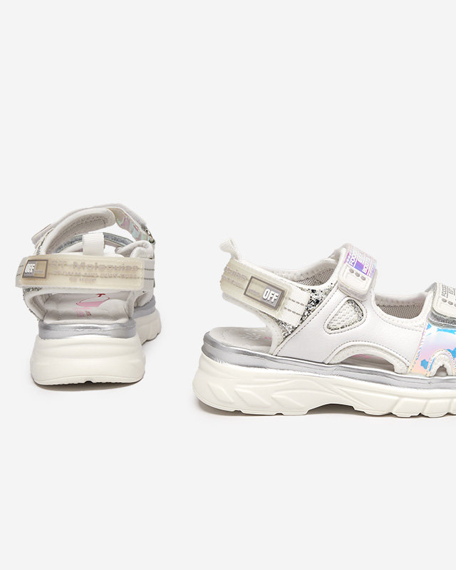 Baltas un sudraba krāsas bērnu sandales ar krāsainiem ieliktņiem Murino - Apavi