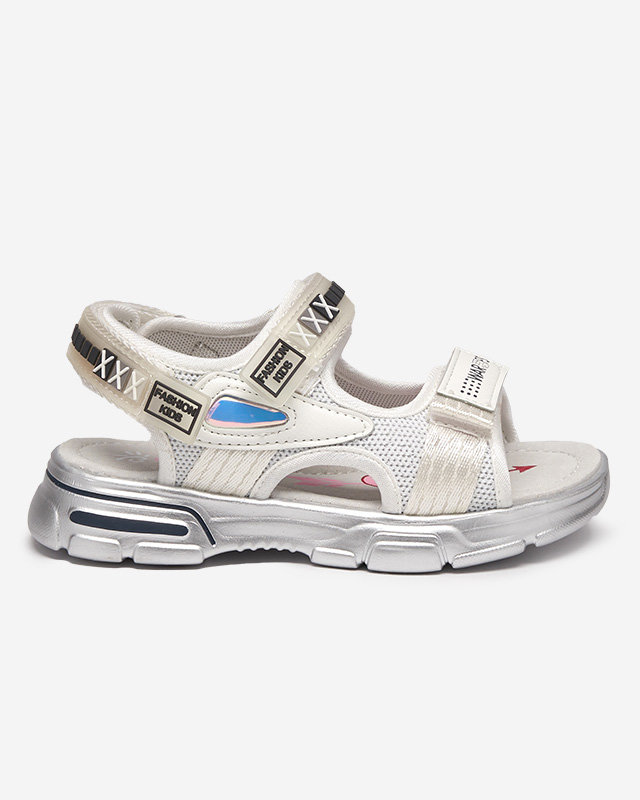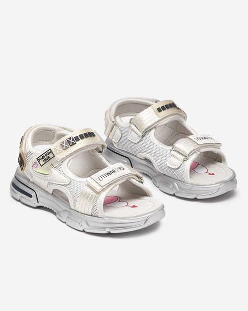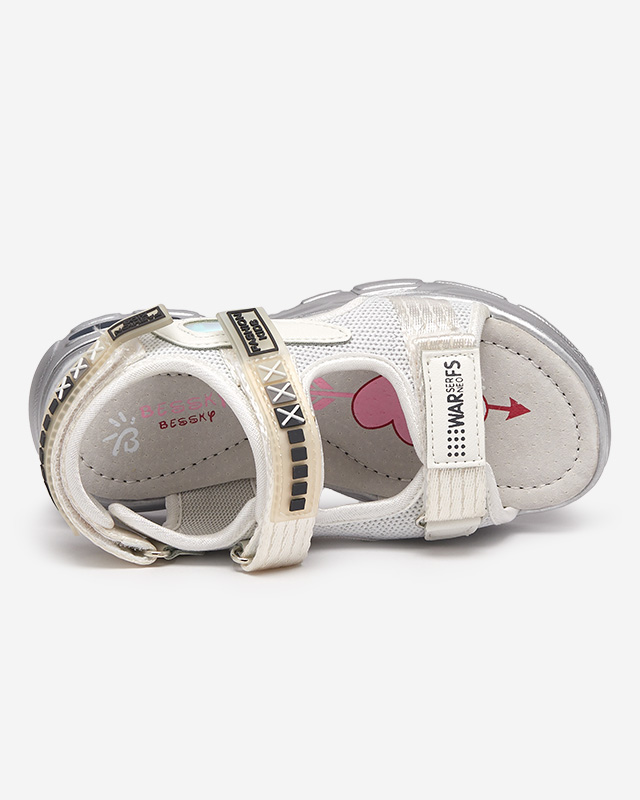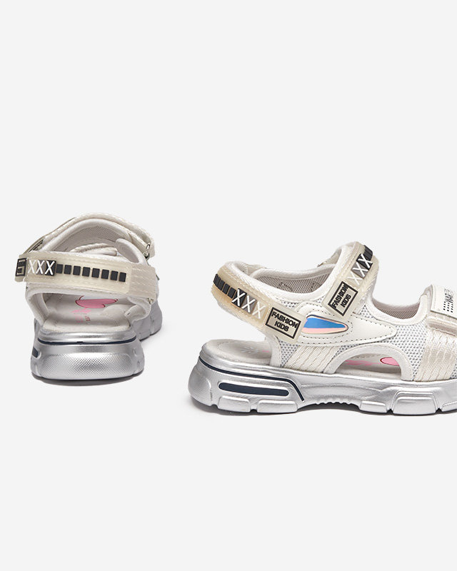 Baltas un sudraba krāsas bērnu sandales ar Velcro Mepoti - Apavi