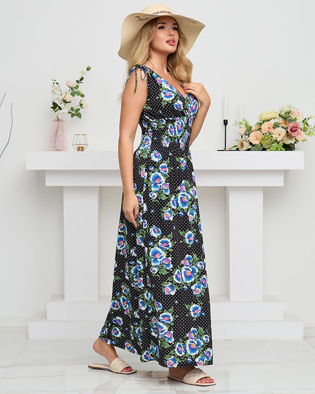 Sieviešu melna maxi kleita ar ziliem ziediem - Apģērbs