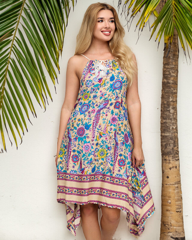 Sieviešu bēša raksta apmetņa kleita - Apģērbs
