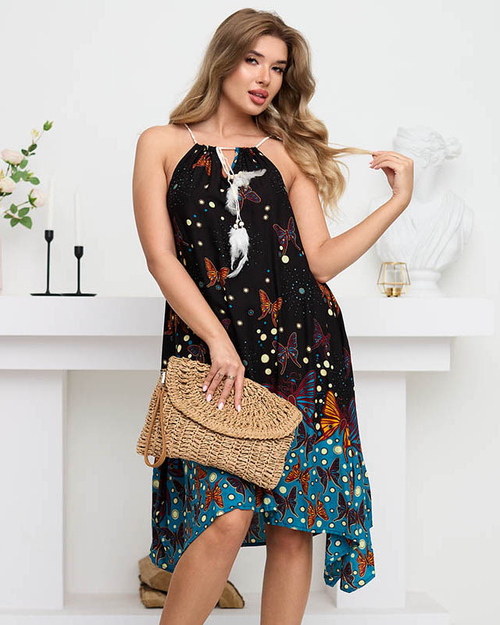 Sieviešu melna vasaras kleita ar tauriņiem - Apģērbs