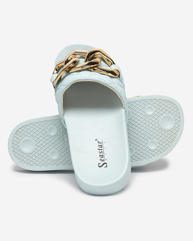 Zilas sieviešu stepētas čības ar zelta ķēdīti Eteris - Apavi