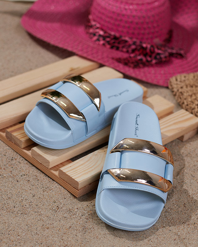 Zilas sieviešu čības ar zeltainu Serina ornamentu - Apavi