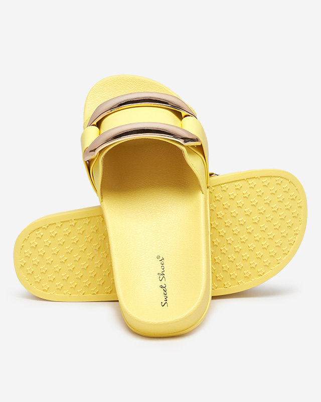 Dzeltenas sieviešu čības ar zelta ornamentu Serina - Apavi