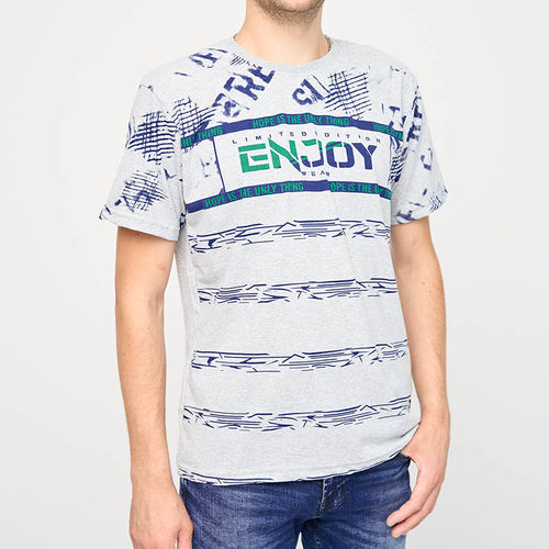 Vīriešu pelēks t-krekls ar uzrakstu ENJOY- Clothes