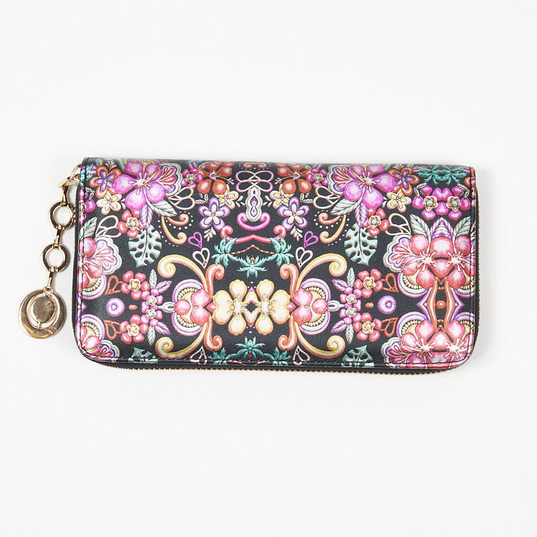 Liels melns sieviešu maks ar ziedu rakstu - Aksesuāri