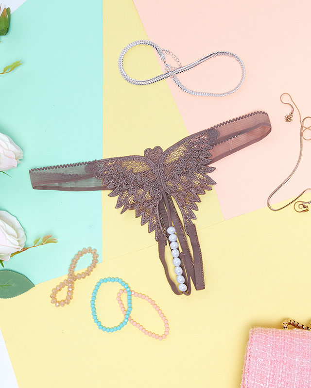 Sieviešu brūnas siksnas ar mežģīnēm un krellēm - Apakšveļa