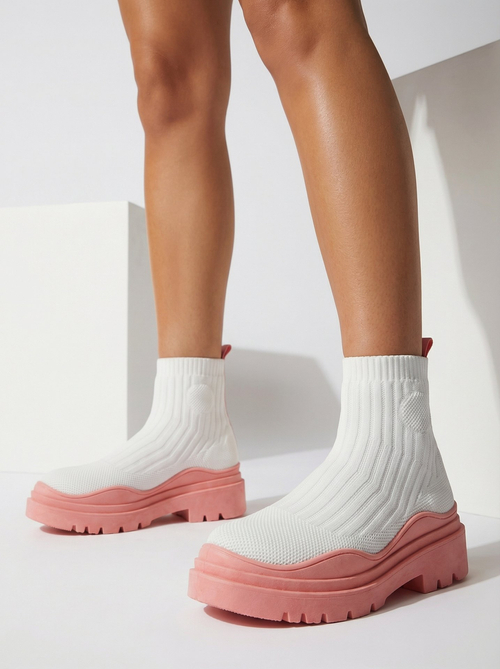 • Oriģināli sieviešu slip-on zābaki no elastīga auduma materiāla. Modelim uz masīvas gumijas zoles ir auduma iekšpuse. Ideāls pamats daudziem ikdienas izskatiem! BALTI UN ROZĀ APAVI SIEVIEŠU NEIZOLTĀTI ZĀBAKI KORILCO