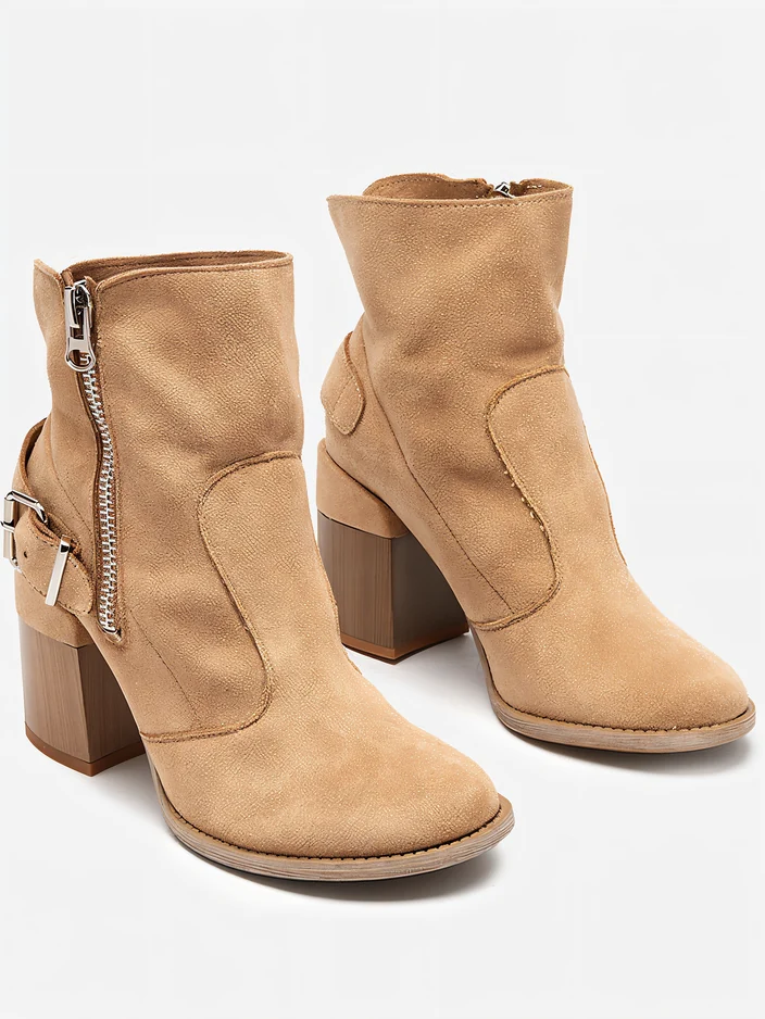 Gaiši brūni eko zamšādas sieviešu zābaki uz staba Emrica - Apavi