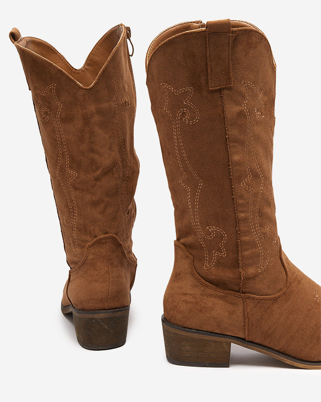 Sieviešu zābaki līdz ikru vidum izolēti ar kamieļa izšuvumu Redarika - Apavi