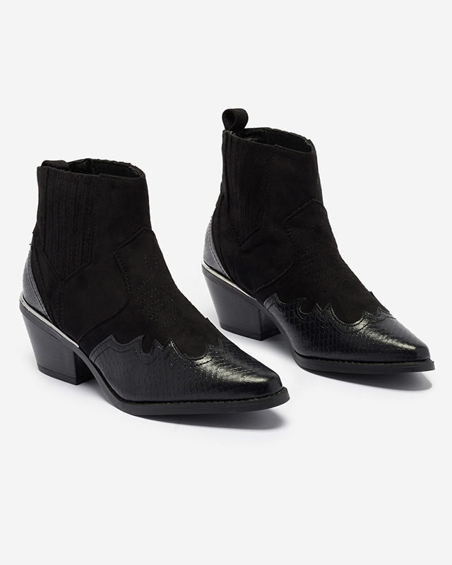 Melni eko zamšādas kovboju zābaki uz zema staba Zirras - Apavi