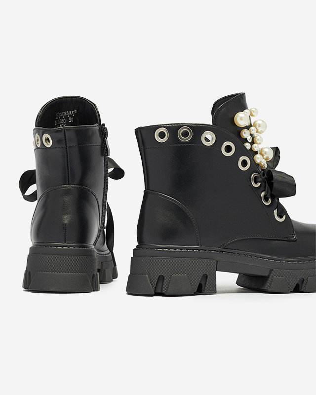 Melni sieviešu zābaki, kas šņorēti ar lentīti Legati- Footwear