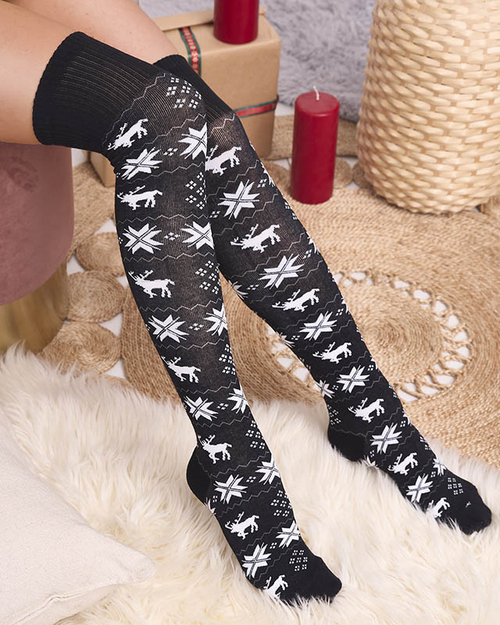 Sieviešu Ziemassvētku zeķes pāri ceļgaliem melnā krāsā - apakšveļa
