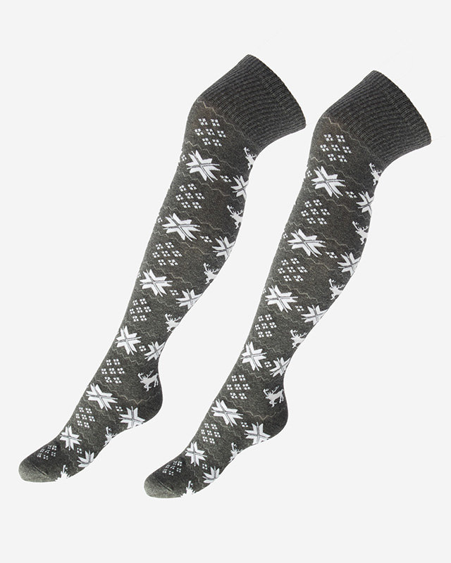 Sieviešu ziemassvētku zeķes pāri ceļgaliem tumši pelēkā krāsā - Apakšveļa