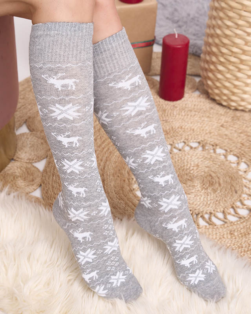 Sieviešu gaiši pelēkas garas Ziemassvētku zeķes - Apakšveļa