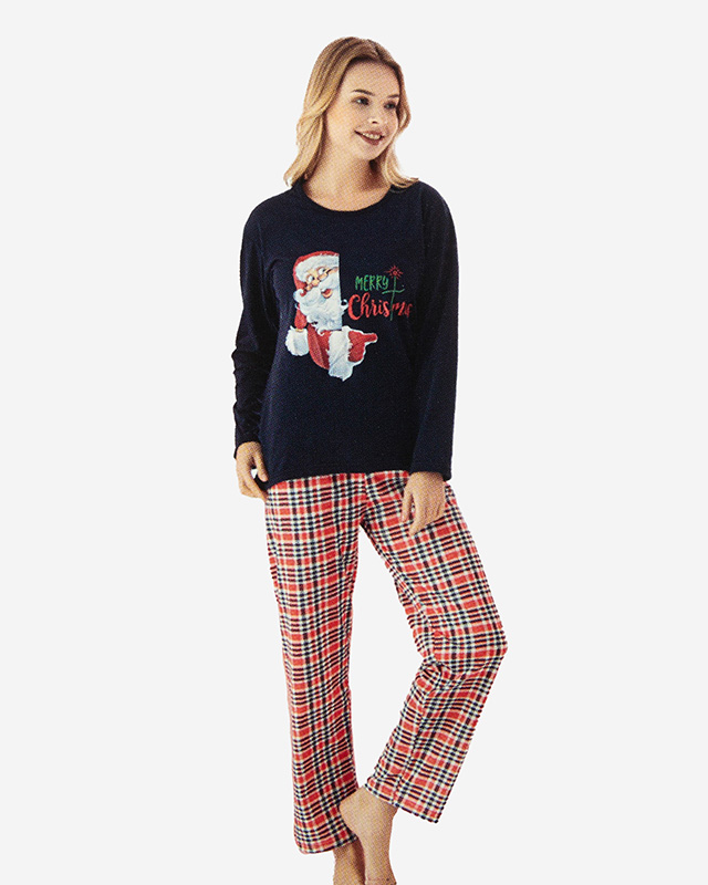 Tumši zila sieviešu divdaļīga pidžama ar Ziemassvētku apdruku - Apģērbs