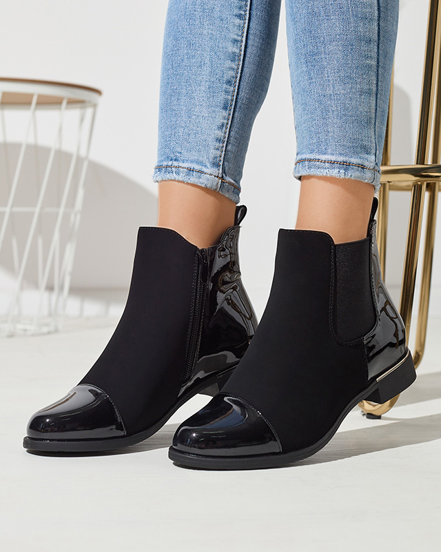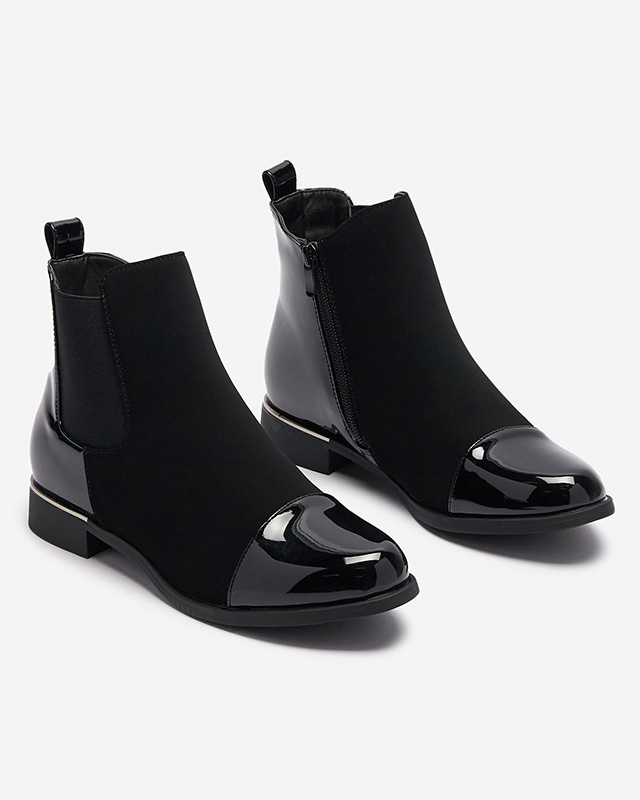 • Melni sieviešu zābaki, kas izgatavoti no lakādas un eko nubuka kombinācijas. Modelim ir rāvējslēdzēja aizdare un ar kažokādu siltināta iekšpuse. MELNI SILTINĀTI ZĀBAKI SIEVIEŠU ZIEMAS ZĀBAKI PROMENIA