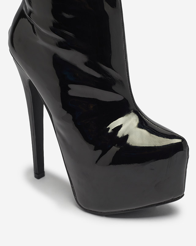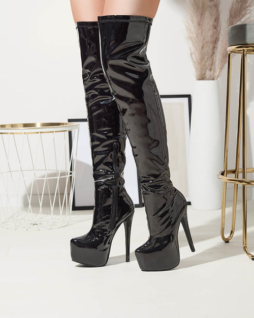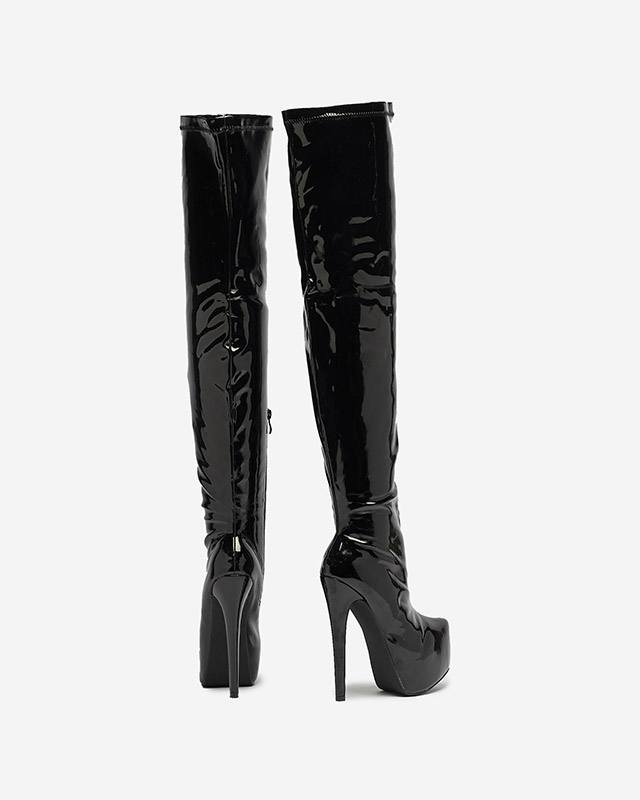 Sieviešu lakotas krāsas zābaki pāri ceļgaliem melnā krāsā Leccie- Footwear