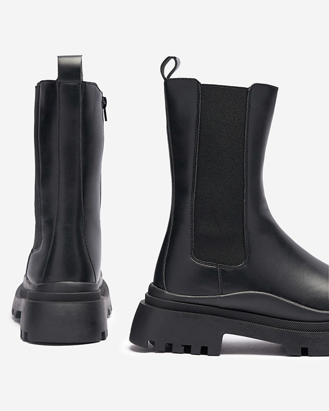 OUTLET Melni sieviešu zābaki ar plakanu papēdi Okidas - Apavi